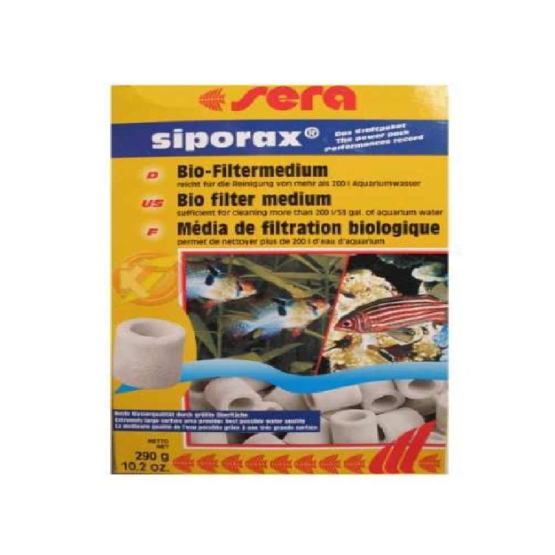 Sera Siporax é um material de suporte biológico total, para todos os sistemas de filtragem interiores,exteriores e gota a gota, assim como para filtros de lagos de jardim.